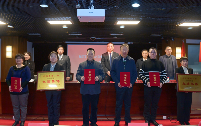 與會領(lǐng)導(dǎo)為榮獲2023年度工會先進(jìn)集體、先進(jìn)個人代表頒獎。