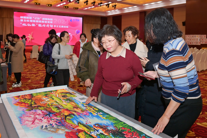 《人間煙火》舞蹈徐徐拉開活動(dòng)序幕。來自集團(tuán)各單位的女職工們親手制作的手工藝作品,讓大家眼前一亮,精美的剪紙和手工藝編織、精湛的書法、奪目的繪畫、華麗的十字繡等185件手工藝作品,色彩艷麗、栩栩如生。