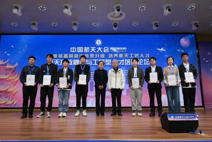 “五一”勞動(dòng)節(jié)前夕,在武漢召開的中國(guó)航天大會(huì)“全國(guó)職業(yè)院??破招l(wèi)星研制工程邀請(qǐng)賽”頒獎(jiǎng)儀式上,中國(guó)職業(yè)技術(shù)教育學(xué)會(huì)會(huì)長(zhǎng)、教育部原副部長(zhǎng)魯昕為技師學(xué)院獲獎(jiǎng)選手代表邱世龍頒獎(jiǎng),并與中國(guó)運(yùn)載火箭技術(shù)研究院龍樂豪院士一同和獲獎(jiǎng)選手合影留念。