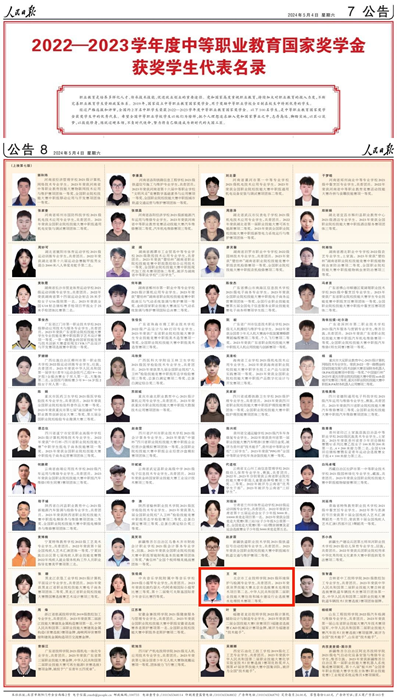 5月4日、5日,《人民日?qǐng)?bào)》專(zhuān)版刊登了100名研究生國(guó)家獎(jiǎng)學(xué)金獲獎(jiǎng)學(xué)生優(yōu)秀代表、100名本專(zhuān)科生國(guó)家獎(jiǎng)學(xué)金獲獎(jiǎng)學(xué)生優(yōu)秀代表、100名中等職業(yè)教育國(guó)家獎(jiǎng)學(xué)金獲獎(jiǎng)學(xué)生優(yōu)秀代表名錄。北京市工業(yè)技師學(xué)院環(huán)保與生物制藥系2021級(jí)環(huán)境保護(hù)與檢測(cè)專(zhuān)業(yè)學(xué)生王珂,榜上有名。