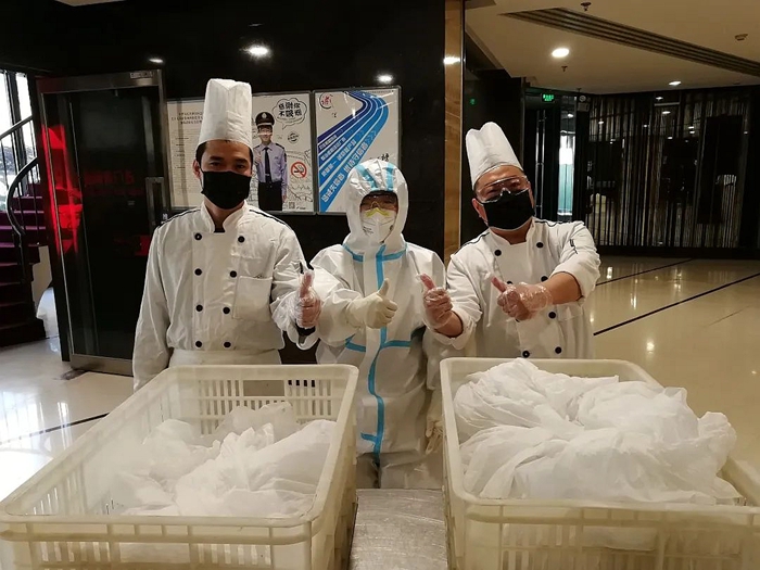 此次專項(xiàng)任務(wù)最關(guān)鍵的環(huán)節(jié),就是送餐和收納生活垃圾。接送餐飲,收納垃圾都在每個(gè)房間的門口。當(dāng)送餐和收納垃圾這一艱巨任務(wù)擺在大家面前的時(shí)候,東方賓館的同志們沒(méi)有退縮,紛紛要求接下這一任務(wù),特別是共產(chǎn)黨員、餐飲部經(jīng)理周麗麗,共產(chǎn)黨員、辦公室主任張艷紅,強(qiáng)烈要求主動(dòng)上崗。賓館黨支部考慮到周麗麗專業(yè)性更強(qiáng),最終決定由她來(lái)負(fù)責(zé)每天的送餐和生活垃圾收納工作。