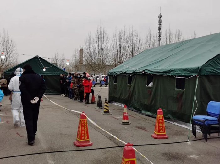 采樣期間,因人員較多,采樣工作都在室外進行。工作在最低溫度達到零下10度左右的環(huán)境里,42名應(yīng)急隊員穿戴全副武裝的防護服,不僅要直面寒冷天氣的侵襲,還要克服醫(yī)用防護服、醫(yī)用防護眼鏡、防護口罩等一層層防護用品所帶來的不便。