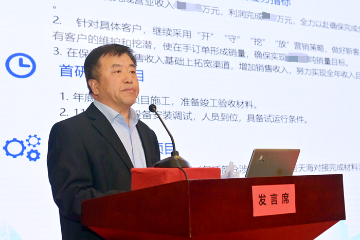 北京化工集團副總經(jīng)理張榮寰對前三個季度生產(chǎn)運營及重點任務落實情況進行量化對比分析,對四季度重點工作進行了全面部署。