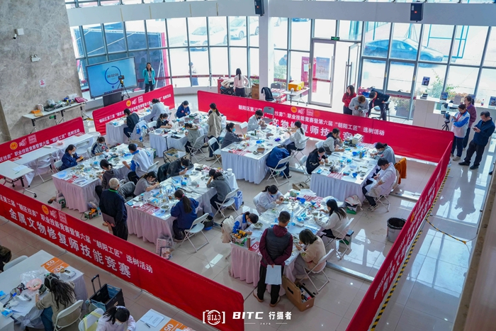 在此次大會現(xiàn)場實(shí)時(shí)直播的“文物修復(fù)師技能競賽決賽”,依托技師學(xué)院先進(jìn)的標(biāo)準(zhǔn)化實(shí)訓(xùn)場地與專業(yè)設(shè)備資源,匯聚故宮博物院、知名企業(yè)及相關(guān)院校的專家學(xué)者,共同為參賽選手打造了一個高水準(zhǔn)、專業(yè)化的競技平臺。經(jīng)過10月中旬初賽的激烈角逐, 脫穎而出的來自全北京市75名優(yōu)秀文物修復(fù)師晉級決賽,在“金屬修復(fù)”、“陶瓷修復(fù)”和“紙張書畫修復(fù)”三大賽項(xiàng)中展現(xiàn)精湛技藝。