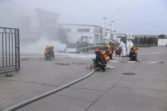 為進(jìn)一步筑牢安全生產(chǎn)防線,壓緊壓實(shí)安全生產(chǎn)責(zé)任, 6月底,華騰化工組織開展了2024年危險(xiǎn)化學(xué)品火災(zāi)事故應(yīng)急演練。此次演練模擬場(chǎng)景為危險(xiǎn)化學(xué)品庫房入庫作業(yè)時(shí)發(fā)生丙酮泄露著火,開展了火災(zāi)上報(bào)與先期處置、人員疏散逃生、微型消防站和消防救援隊(duì)滅火等環(huán)節(jié)的演練科目。