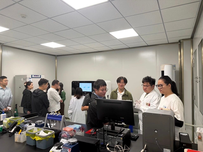 團(tuán)員青年們來(lái)到毗鄰清華大學(xué)、北京大學(xué)的北化生科公司國(guó)際生物島現(xiàn)場(chǎng)參觀學(xué)習(xí)。工作人員介紹了北化生科公司的整體規(guī)劃與發(fā)展歷程,重點(diǎn)介紹了集團(tuán)生物醫(yī)藥產(chǎn)業(yè)布局、核心服務(wù)平臺(tái)功能、重點(diǎn)產(chǎn)業(yè)集群優(yōu)勢(shì)以及未來(lái)發(fā)展目標(biāo)愿景。隨后,團(tuán)員青年們走進(jìn)實(shí)驗(yàn)室,專(zhuān)業(yè)人員為他們講解了基因測(cè)序等基礎(chǔ)知識(shí),并結(jié)合正在開(kāi)展的科研項(xiàng)目,生動(dòng)介紹了這些技術(shù)在實(shí)際研發(fā)中的應(yīng)用場(chǎng)景與巨大潛力。