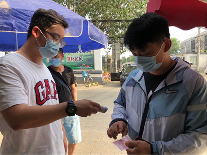 新三余村外來(lái)人口較多,進(jìn)出人流量大,值守檢查不能有絲毫的馬虎,在做好自身防護(hù)的情況下,認(rèn)真檢查進(jìn)出人員的出入證與身份證、測(cè)量體溫、并做好登記工作。