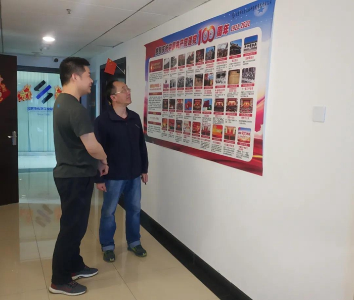黨史學(xué)習(xí)教育深入開展以來,化研院在自己的官方微信公眾號(hào)上開辟“每周一學(xué)一答”活動(dòng)專欄,使干部職工在公眾號(hào)上每次完成相關(guān)黨史知識(shí)學(xué)習(xí)后,再完成5道答題,以引領(lǐng)黨員干部職工學(xué)黨史、悟思想,積極營造學(xué)習(xí)黨史的濃厚氛圍。此外,化研院黨總支在華騰科技大廈五層張貼“黨的百年歷史簡圖”,營造學(xué)習(xí)黨史濃厚氛圍。