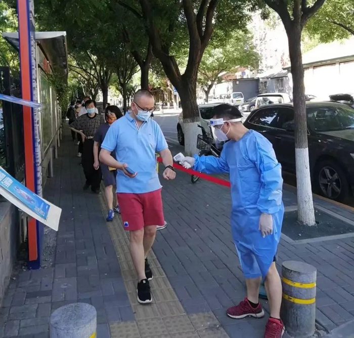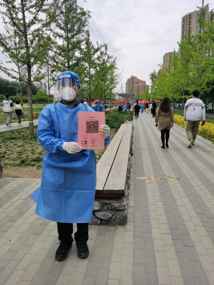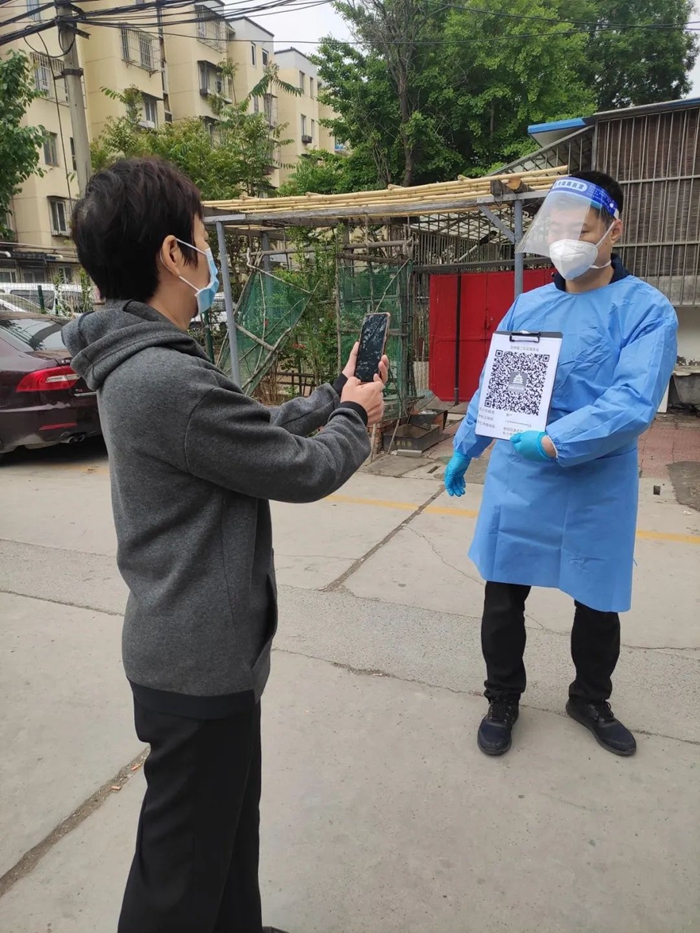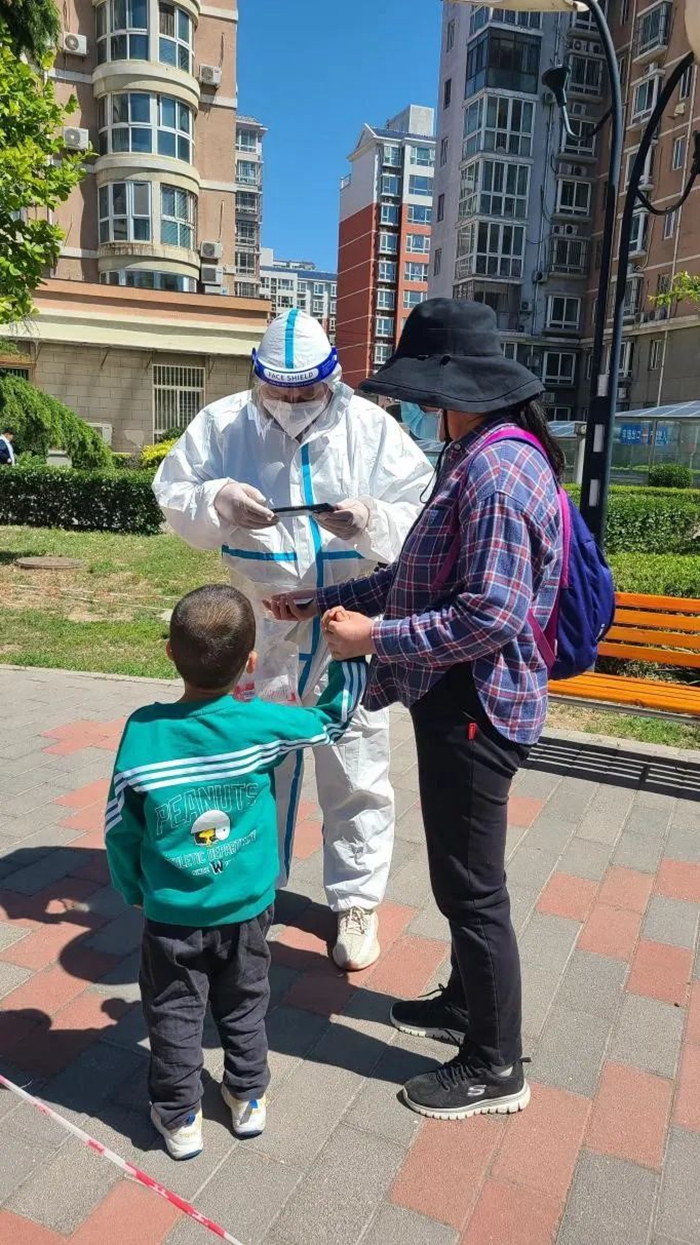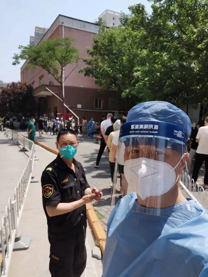 5月的天氣,溫度說升就升,每天2次4個(gè)小時(shí)的防護(hù)服穿下來,下崗時(shí)每每全身濕透,但我一點(diǎn)也不后悔,看著手機(jī)里每次錄入600人、700人、800人等的信息時(shí),內(nèi)心升起一種無比的自豪,北京全員核酸檢測(cè)里有我的一份汗水。