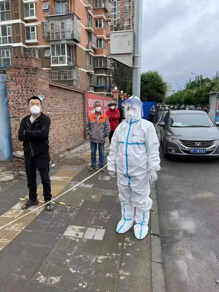 眼看天氣越來越熱,北京出現(xiàn)連續(xù)高溫,為更好地保護(hù)負(fù)責(zé)檢測(cè)的醫(yī)護(hù)和社工人員,社區(qū)決定下午一點(diǎn)停止檢測(cè),可是這個(gè)舉動(dòng)開始并不被居民們理解,往往到了一點(diǎn)之后還是有人陸陸續(xù)續(xù)前來測(cè)核酸。每每這個(gè)時(shí)候,我總會(huì)站到隊(duì)尾向大家解釋,告訴他們坐在隔離艙內(nèi)檢測(cè)人員的不容易,請(qǐng)大家換位思考給予諒解。雖然有時(shí)會(huì)面對(duì)許多質(zhì)疑的聲音,但我依舊會(huì)保持一份熱情、一份理解、一份關(guān)愛,因?yàn)槲覉?jiān)信,這身防護(hù)服帶給我的是榮耀、是真真切切為人民服務(wù)的標(biāo)識(shí)?,F(xiàn)在,居民們漸漸理解了工作人員的不易,我也感受到了居民們的通情達(dá)理和關(guān)愛。