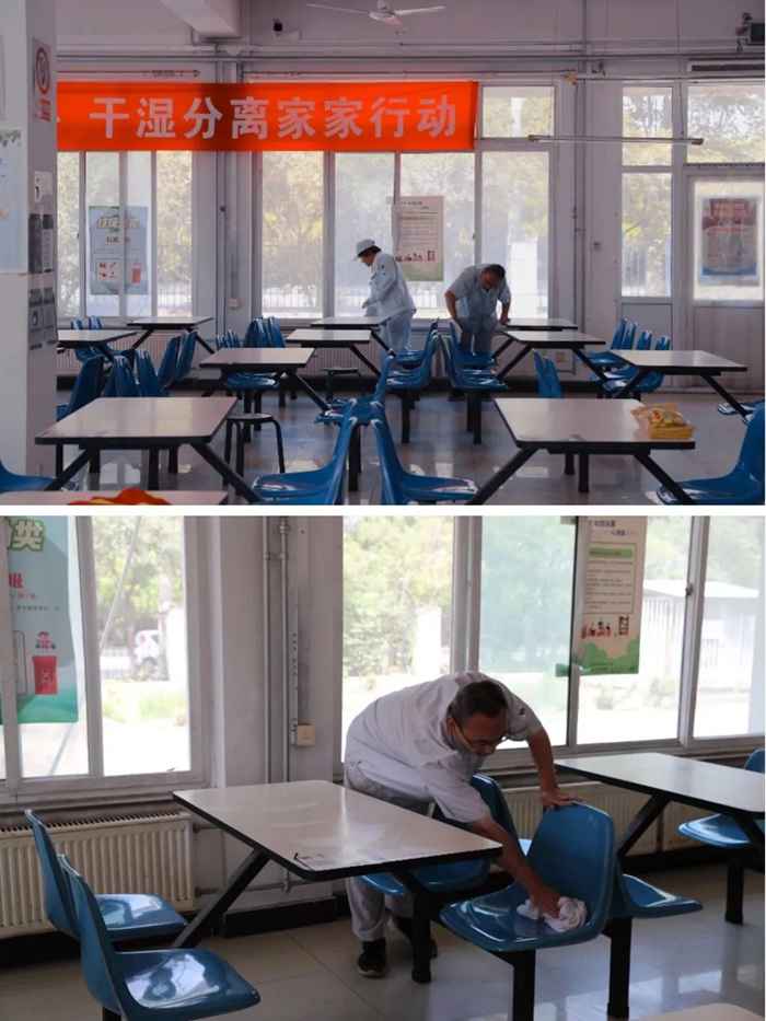 打掃完后,大家還對就餐環(huán)境進(jìn)行了消毒,確保做到消殺“全覆蓋、無死角、無盲區(qū)”,為職工提供健康的就餐環(huán)境,全力保證全園職工的健康安全。