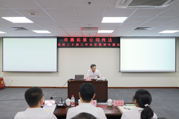 7月31日,華騰拓展公司黨總支召開學(xué)習(xí)貫徹黨的二十屆三中全會(huì)精神專題宣講報(bào)告會(huì),北京化工集團(tuán)總經(jīng)理助理,華騰拓展公司黨總支書記、董事長李泳作宣講報(bào)告。李泳圍繞學(xué)習(xí)貫徹黨的二十屆三中全會(huì)精神,結(jié)合集團(tuán)“231”戰(zhàn)略布局、三個(gè)“北化”發(fā)展方向以及華騰拓展公司工作實(shí)際,明確了當(dāng)前及今后一段時(shí)期的重點(diǎn)工作、重點(diǎn)任務(wù)。