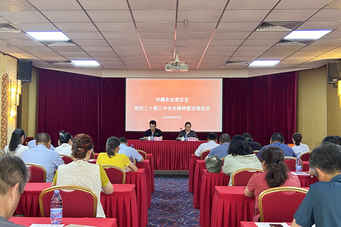 8月5日,華騰東光黨總支召開學(xué)習(xí)貫徹黨的二十屆三中全會(huì)精神專題宣講報(bào)告會(huì),黨總支書記、董事長、總經(jīng)理宋鋼作宣講報(bào)告。