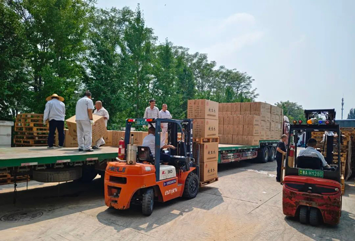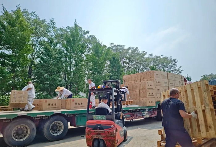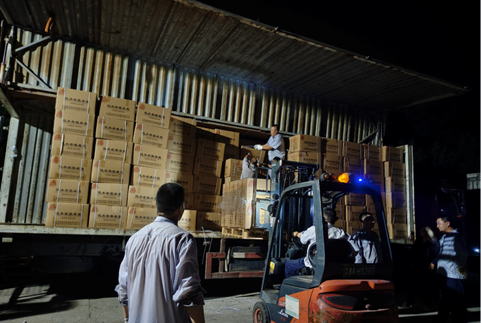 華騰化工立即調(diào)度人力、物力,爭分奪秒組織應(yīng)急物資配送。歷經(jīng)5個(gè)多小時(shí)不間歇備貨、裝載,滿載應(yīng)急物資的4輛大貨車陸續(xù)發(fā)車,前往抗汛一線。