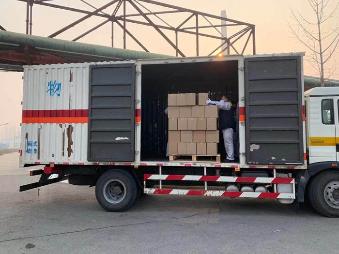 根據(jù)用戶反饋的需求信息,經(jīng)市物資保障組決定,將25L大包裝調(diào)整為500ML/瓶小包裝,北化集團(tuán)承擔(dān)相關(guān)卸貨、進(jìn)庫(kù)、儲(chǔ)存、配送任務(wù)。由華騰化工公司倉(cāng)儲(chǔ)事業(yè)部、安全生產(chǎn)部、保衛(wèi)部、公用工程事業(yè)部20名同志負(fù)責(zé)卸貨入庫(kù)。