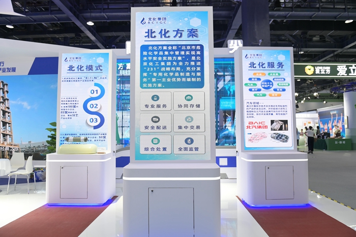 突出展現(xiàn)集團發(fā)揮主責主業(yè)優(yōu)勢,圍繞首都“四個中心”功能建設,積極融入“五子”聯(lián)動新格局取得的豐碩成果,是北京化工集團此次參展的一大亮點。“三個北化”——“北化方案”“北化模式”“北化服務”展屏矗立其間,構筑安全管理全產(chǎn)業(yè)體系、發(fā)展生物醫(yī)藥大健康產(chǎn)業(yè)、服務首都產(chǎn)業(yè)鏈安全,成為集團全新戰(zhàn)略方向和目標。
