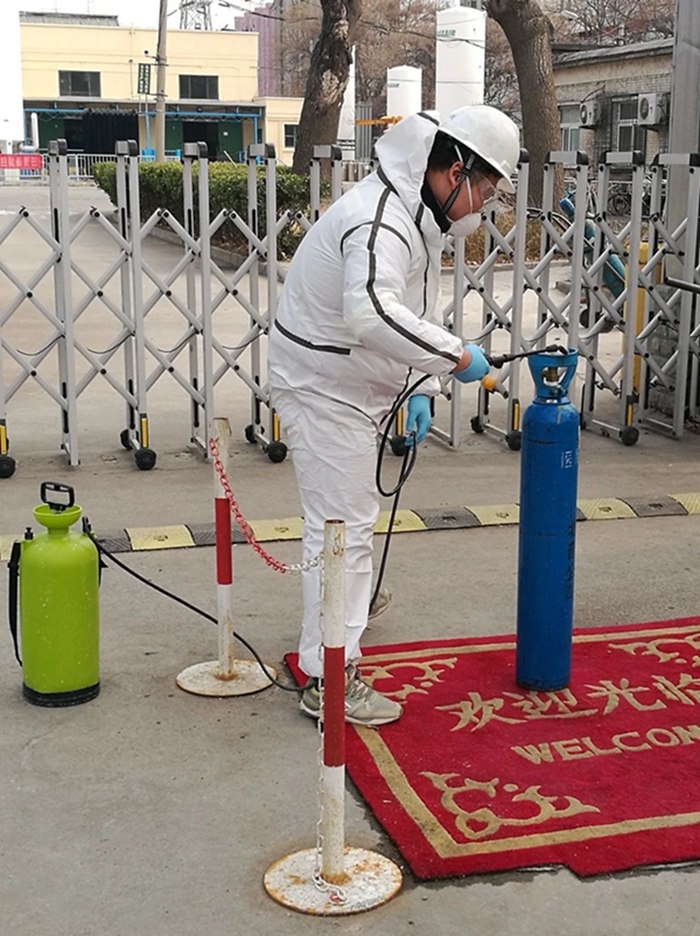 疫情發(fā)生以來,華騰冀春按照北化集團(tuán)黨委要求,全力做好疫情防控工作。公司在3天時間內(nèi)購入口罩1000個,消毒液16桶,測溫儀2個,高壓噴水壺2個,保障公司全體值班人員每天2個口罩的替換需求。自疫情爆發(fā)以來,華騰冀春無一例確診和疑似病例。