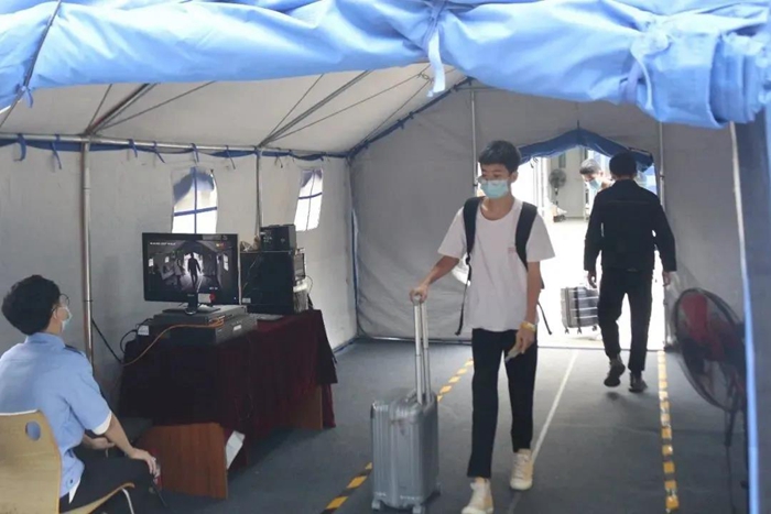 學(xué)院早晚測(cè)體溫,進(jìn)校的同學(xué)們都需進(jìn)行體溫監(jiān)測(cè)。