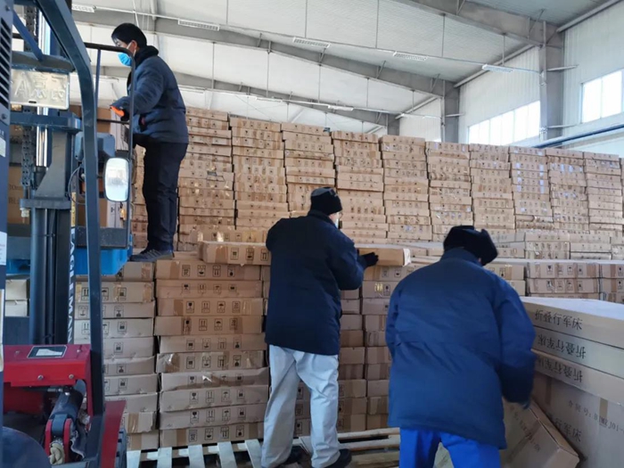 1月份,北京遭遇上世紀(jì)六十年代以來的極寒天氣,空曠的庫房溫度幾乎與室外相同,職工們的手腳被凍僵,但大家有的蹬上兩雙羊絨襪子,有的在身上、腳底貼上暖貼繼續(xù)奮戰(zhàn)在現(xiàn)場。有時(shí)午飯時(shí)間剛到,正好貨車也到了,此時(shí)沒有人會(huì)去吃飯,大家不約而同地奔向貨車,在卸完這趟車后才端起已經(jīng)發(fā)涼的飯盒……