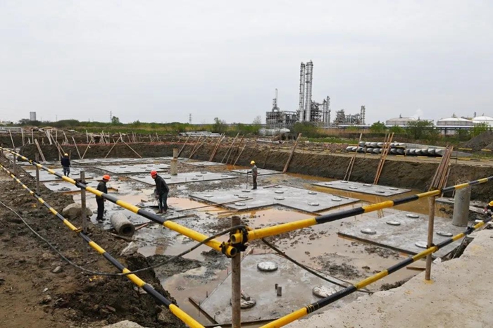 自3月18日,北京化工集團(tuán)PAE項(xiàng)目聚合主裝置建設(shè)施工正式啟動(dòng)以來,至4月15日,聚合主體工程裝置已經(jīng)完成樁基施工,在此進(jìn)度基礎(chǔ)上,單體精餾及溶劑回收和熱媒站也已完成土方開挖,現(xiàn)已進(jìn)入基礎(chǔ)承臺(tái)的模版安裝作業(yè)。控制室和綜合樓已完成工程樁施工、土方開挖和墊層澆筑;輔助用房、管廊和廢氣廢液處理系統(tǒng)正在進(jìn)行工程樁施工。上述施工進(jìn)度標(biāo)志著PAE項(xiàng)目土建工程已經(jīng)全面展開。