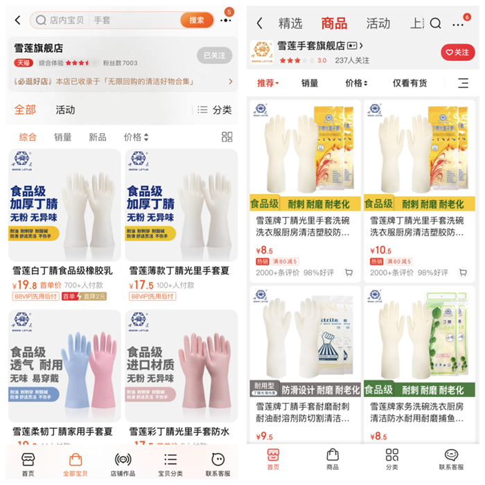 原來,華騰橡塑相當(dāng)一部分訂單來自為其他品牌生產(chǎn)貼牌產(chǎn)品。鼎盛時期,市面上常見的某潔、某雅的近七成手套產(chǎn)品都來自華騰橡塑的生產(chǎn)線。激烈的行業(yè)競爭,使得代工貼牌訂單的利潤空間越來越小。意識到這個問題后,華騰橡塑加大了品牌建設(shè)的投入,適時推出了自有品牌“雪蓮”、“北瑞”。