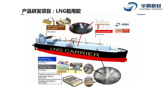 “十四五”期間,華騰新材在深耕傳統(tǒng)膠粘劑市場(chǎng)基礎(chǔ)上,直面LNG船用膠這一“卡脖子”技術(shù)難題,以高端新材料“破題”為抓手,以產(chǎn)業(yè)迭代為目標(biāo),將LNG船用膠作為解決自主替代難題,大膽突破,開拓新市場(chǎng)的重點(diǎn)科研項(xiàng)目。2023年,經(jīng)過科研人員多年全力攻關(guān),華騰新材LNG船用膠產(chǎn)品取得重要突破,其中絕緣板用聚氨酯膠粘劑成功通過法國(guó)GTT公司認(rèn)證,并順利投入商業(yè)化生產(chǎn)。