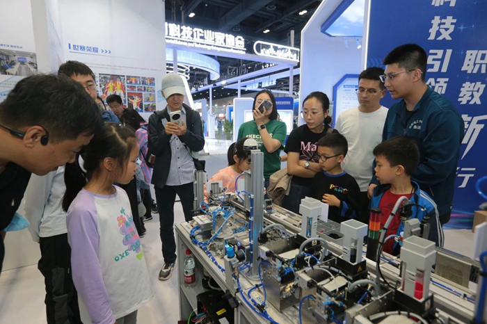 為期4天的展會上,技師學(xué)院以展板展臺、實物展出、現(xiàn)場體驗、視頻播放等多種形式,集中展示技師學(xué)院近年來在世界技能大賽、高技能人才培養(yǎng)、校企合作共建等方面的發(fā)展成就成果,吸引了眾多參觀者駐足打卡。