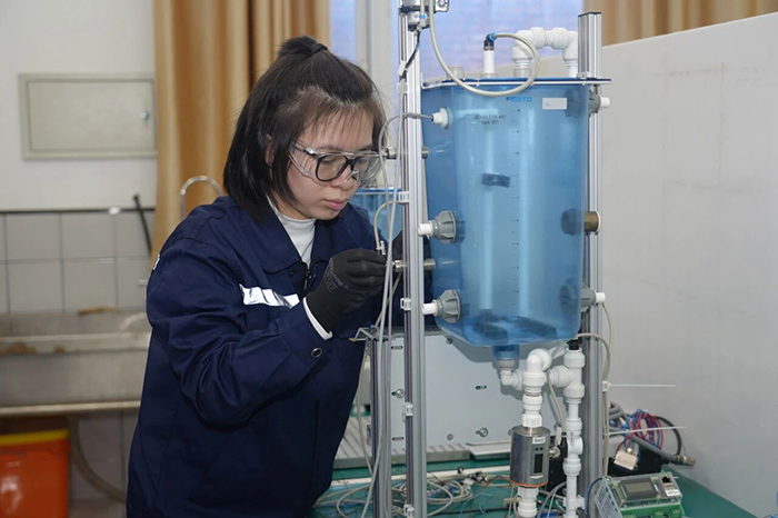一滴水的旅程,關(guān)乎萬家冷暖,關(guān)乎一方水土。當(dāng)千家萬戶為春節(jié)團(tuán)圓而舉杯時(shí),一群年輕人正在為守護(hù)那泓清泉背后的安全與生機(jī)而努力練習(xí)著。水處理技術(shù)項(xiàng)目實(shí)驗(yàn)室里,來自河南、山西等地職院的11名年輕選手,正凝神搭建著微縮的“城市水脈”?;炷?、沉淀、過濾、消毒……一座現(xiàn)代化水廠的完整流程,在不足兩平方米的操作臺(tái)上正精密“上演”。選手趙可俯身調(diào)整管路,動(dòng)作沉穩(wěn)而利落。教練目光如尺,在她身后半步距離之內(nèi),衡量著她每一次操作的精度。在新任世賽水處理技術(shù)項(xiàng)目中國專家組組長柯瑞華和教練團(tuán)的帶領(lǐng)下,趙可和參加實(shí)訓(xùn)的10名伙伴,正在努力融會(huì)貫通化學(xué)、生物、機(jī)械、自動(dòng)化等多學(xué)科知識(shí),目標(biāo)直指現(xiàn)代化污水處理廠的“總工程師”。春節(jié)前集訓(xùn)的日夜里,他們將反復(fù)演練從水質(zhì)分析到系統(tǒng)檢修的全套模塊。